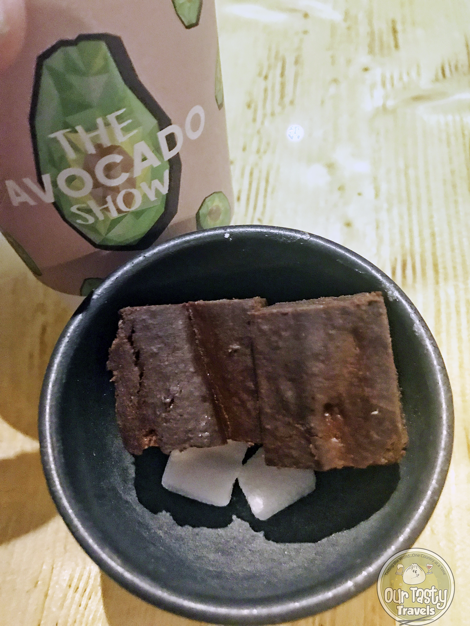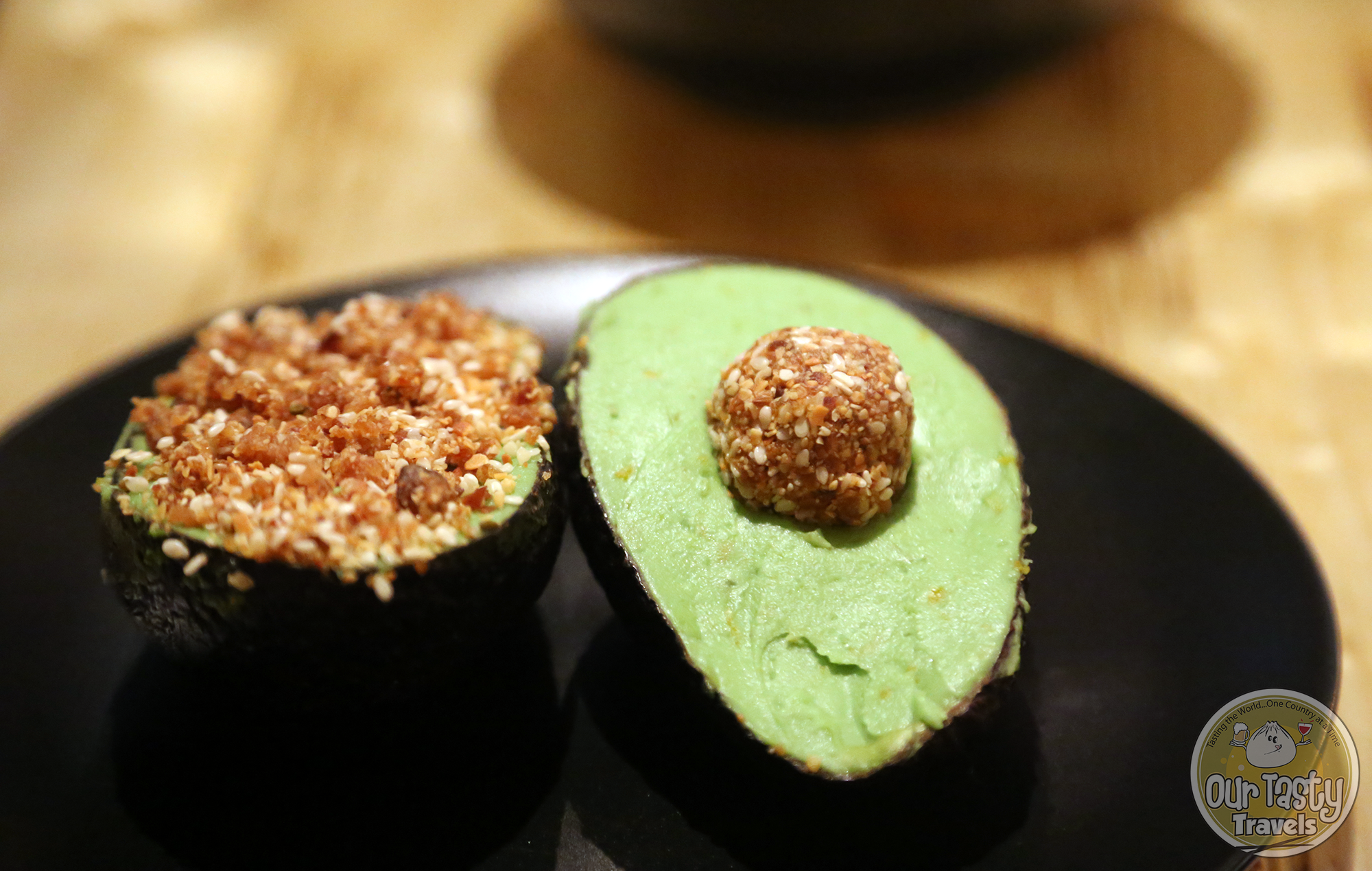 This is The Avocado Show’s signature dessert. It’s made with dates, avocado, citrus, and anise seeds. It loosely looks like a regular halved avocado, as it’s served in the skins, but digging in, it’s citrusy and sweet — quite a nice surprise.