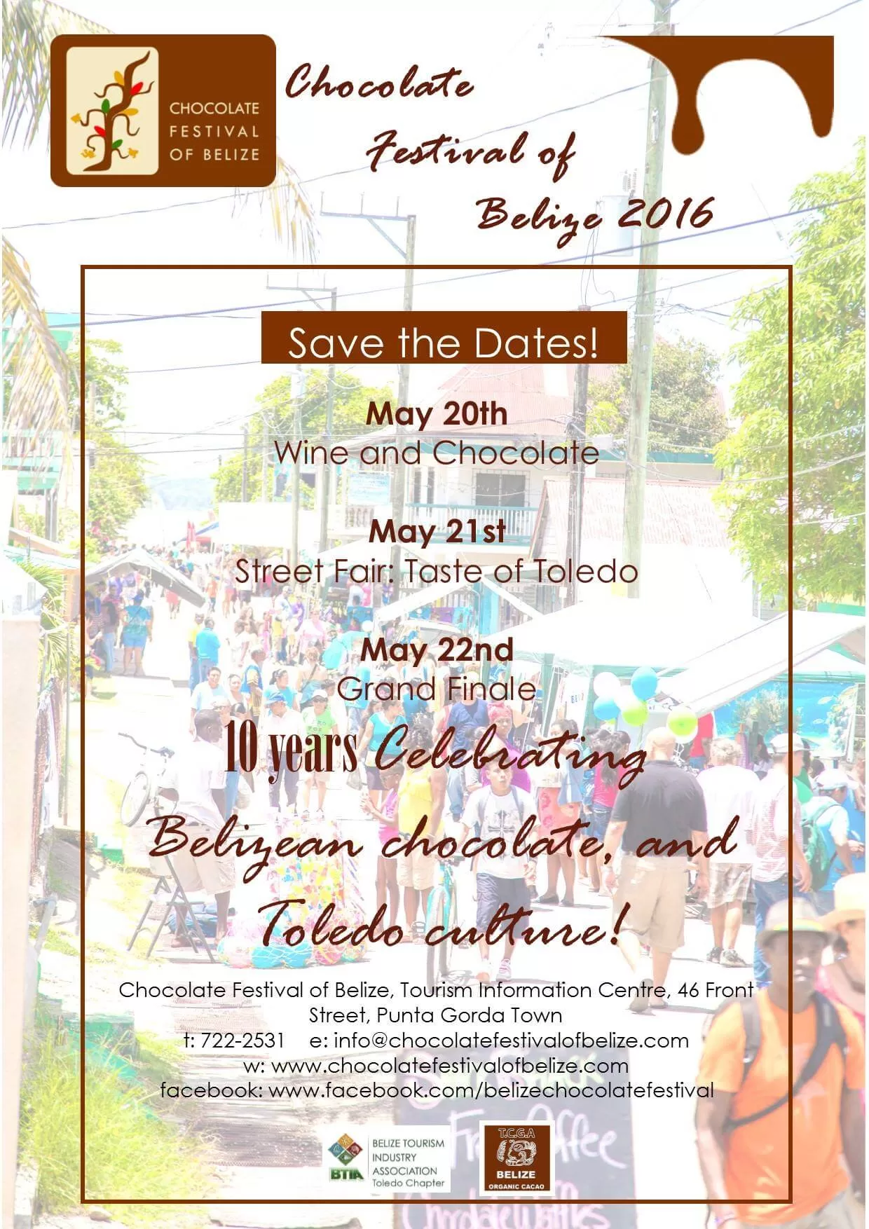 The Chocolate Festival of Belize is a three day festival typically falling later in May, the same weekend as the Commonwealth Day Holiday.