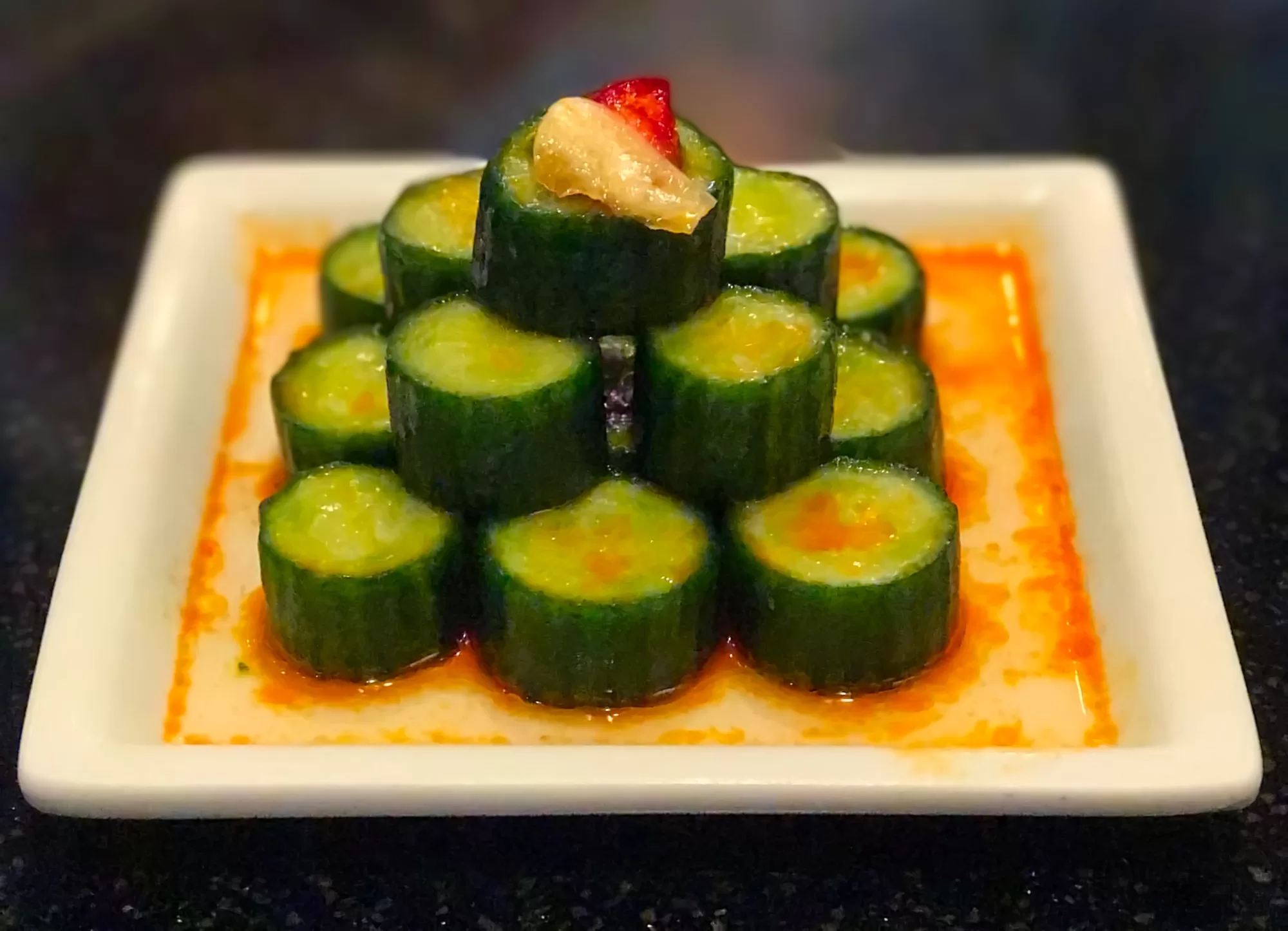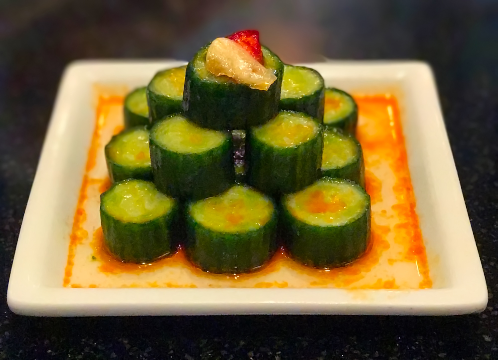 Not a salad in the traditional sense, the Cucumber Salad ($4.50) is a plate of small pickled cucumbers marinated in chili oil and usually a garlic slice on top. This is a must-eat dish for me as long as they aren’t out of it. The chili oil is not that hot, so no worries if you aren’t into very spicy dishes.