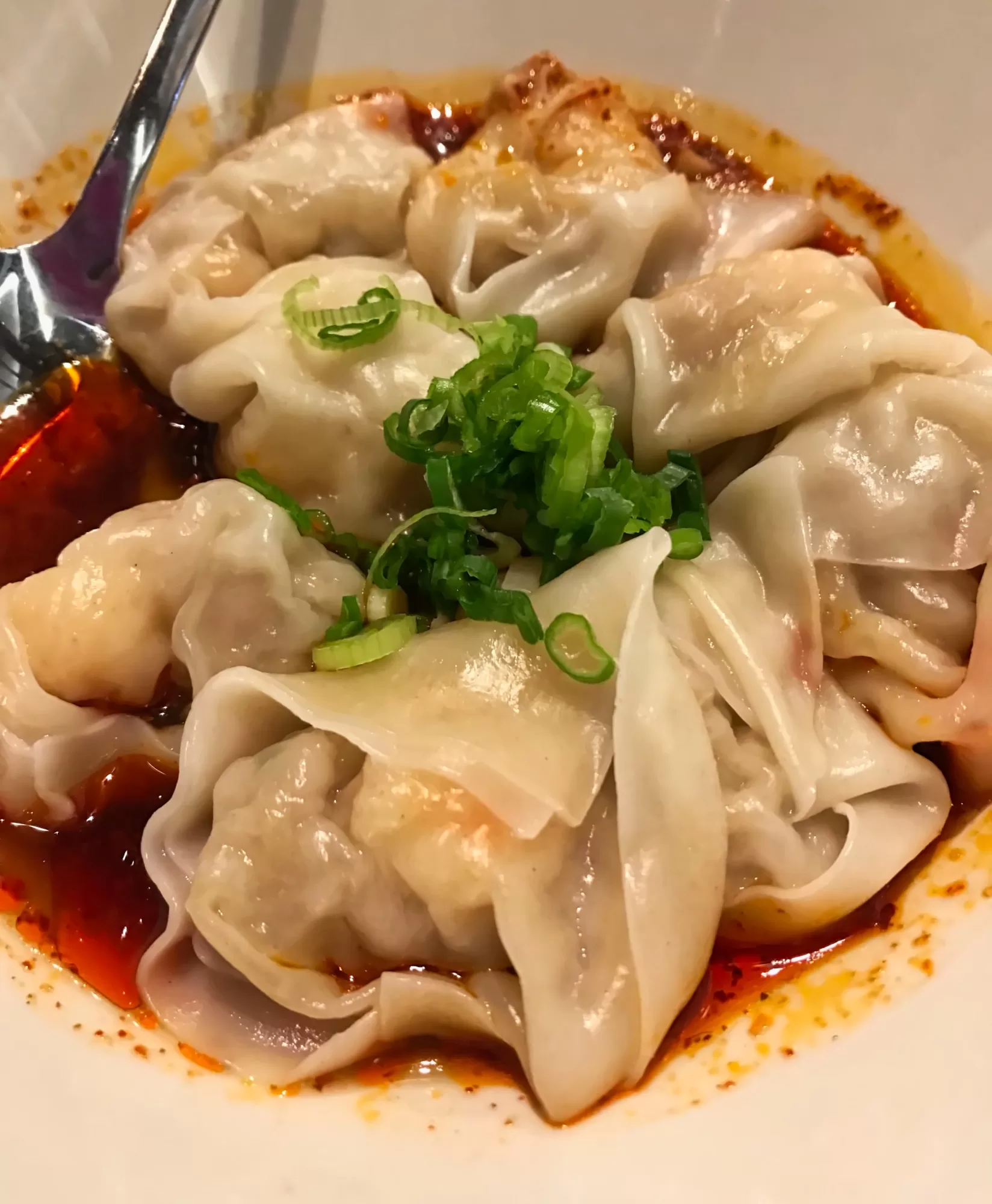 One of my absolute favorite dishes is the Shrimp and Pork Spicy Wontons ($9.50). We’ve been known to order two of these at times! This dish packs some heat, but it’s oh so worth it. Delicate shrimp and pork wontons swimming in a soup of spicy chili sauce with green onions. They are also messy if you slip up with your chopsticks. It’s best to put one on your spoon and then pick it up with your chopsticks, otherwise you might be wearing chili oil. I’ve seen plenty of people struggle with these!