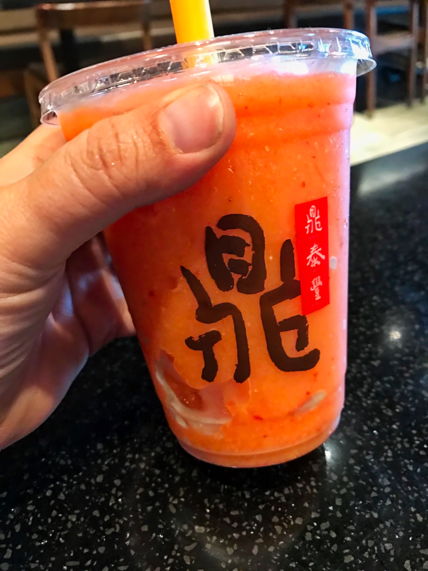 And, rather than order one of the fancy frozen drink concoctions with the food, we have been getting them for dessert and taking them to go. That way we don’t waste precious stomach space needed for dumplings either!