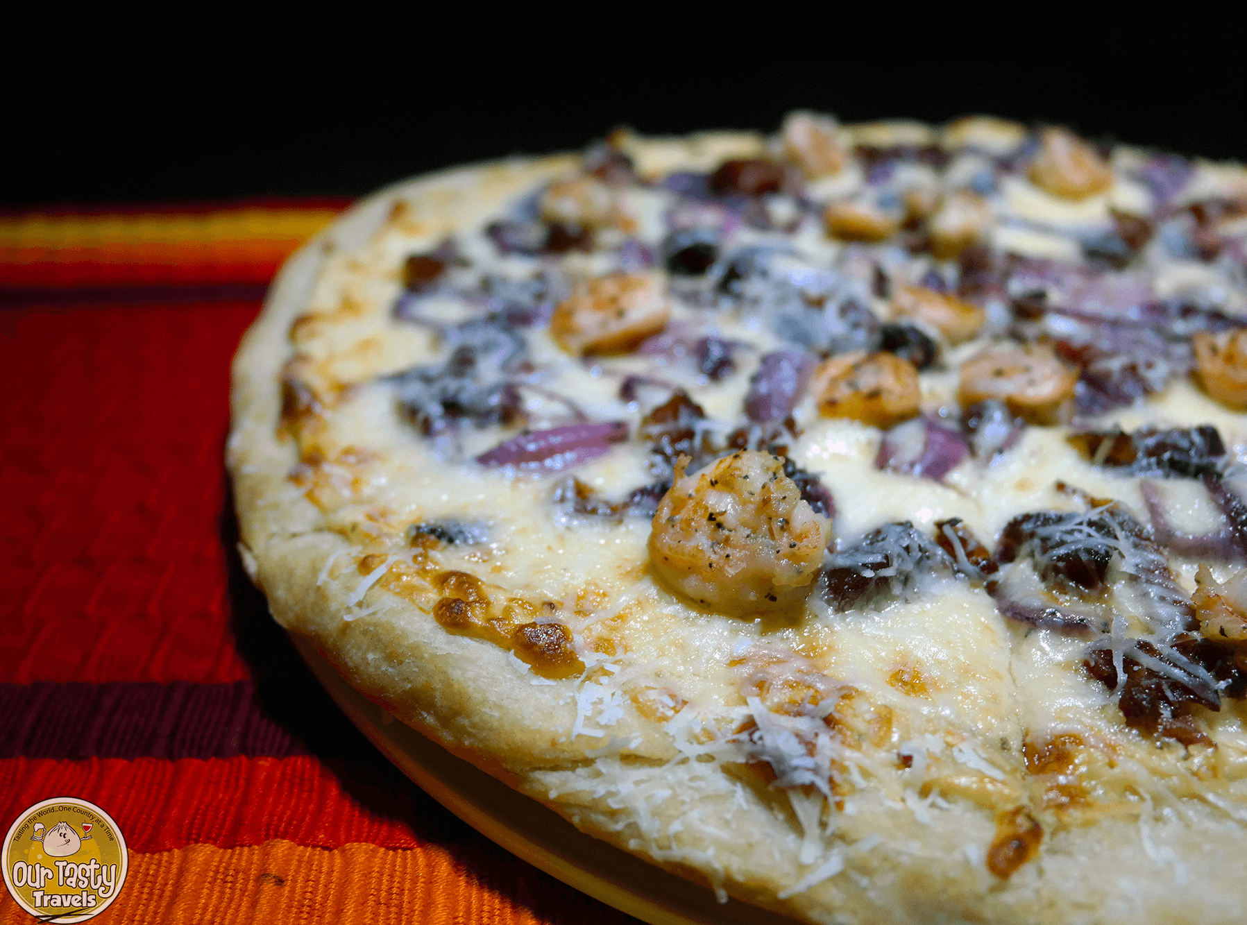 Other pizzas on the current menu include Aloha Pizza (pineapple, red sauce, and ham), Pizza Margherita (red sauce, tomato, basil, and parmesan), Pizza Pizza (pepperoni, mozzarella, and red sauce), and Pizza Americano (“Meat Lovers” with red sauce, pepperoni, bacon, and sausage).