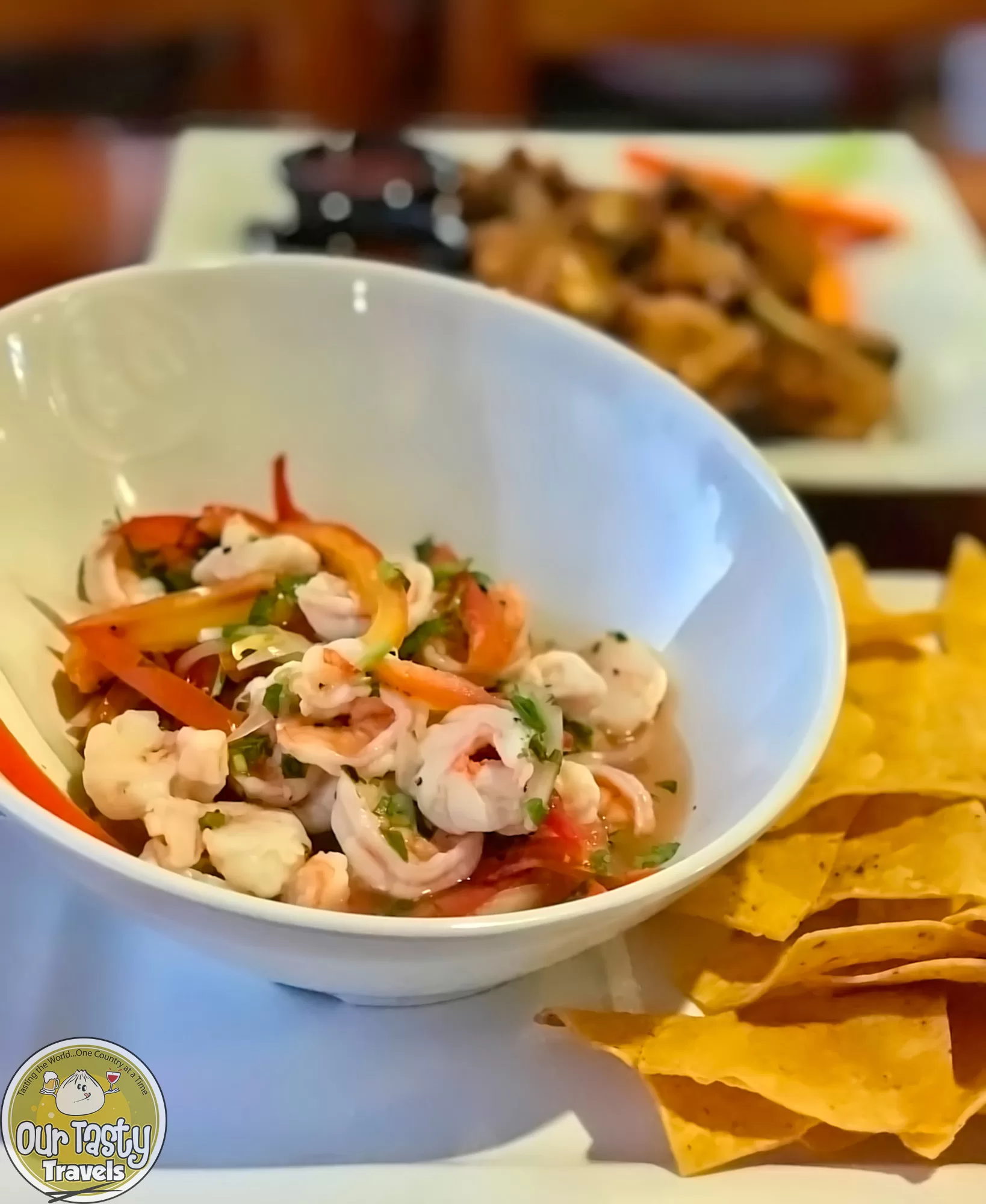 We initially tried the shrimp ceviche and lollipop wings. The ceviche had a stronger lime flavor versus other ceviches you will find in Belize, which was great. The lollipop wings were crispy and well-cooked. They arrived with two sauces, one mild and one that packed some serious heat.