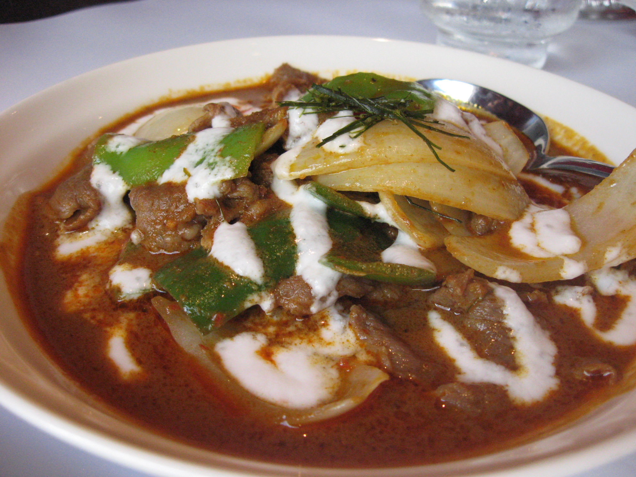 The last item we tried was the Mussaman Beef Curry (NT320). This is one of usual must order dishes if I see it on a menu somewhere. This was rather tasty and still had the nutty element I like, but no actual whole peanuts in the sauce itself. Filled with onions, green peppers, and fresh Kaffir lime leaves, this was a delicious mussaman curry.