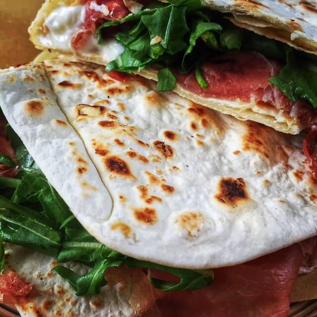 Interesting note: Piadina connoisseurs will tell you they can tell what part of Romagna a piadina is from, even blindfolded! The piadina you’ll find in Rimini tends to be bigger and thinner and, as you move north, they tend to get thicker and shorter.
