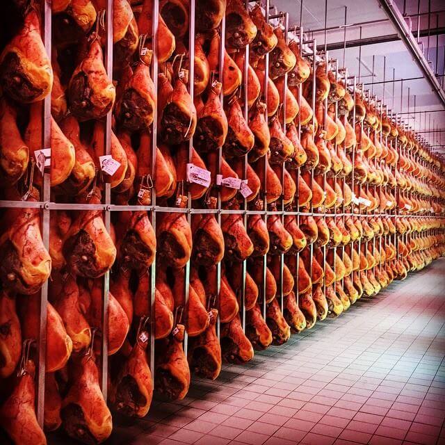 No trip through Emilia Romagna is complete without a stop in Parma. Famous for both Prosciutto di Parma and Parmigiano Reggiano, Parma is yet another important gastronomy center in Italy. If you’re in Parma, be sure to also sample Culatello. This very pricy meat is highly sought after and fetches a pretty penny. You’ll see celebrities and chefs who have their own reserved culatello in many instances. It is made from the major muscles used in prosciutto, but it’s seasoned, lightly salted, and stuffed into a pork bladder. It’s hung for 8-12 months in a dark, moldy building that helps it achieve its signature taste.