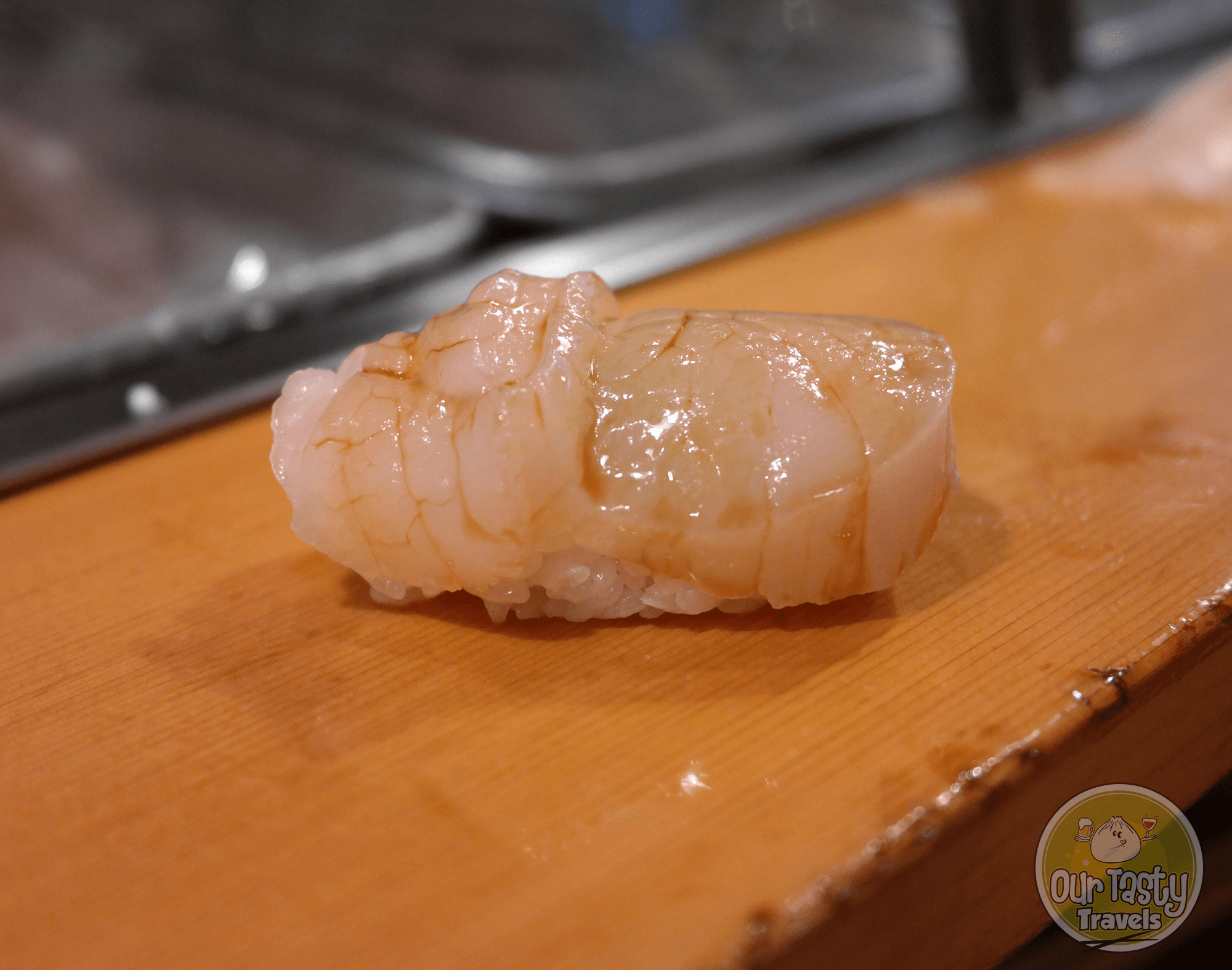 Living in Taiwan for four years certainly opened my mind to becoming a more adventurous eater. For my extra piece of sushi, I chose Shirako, or cod sperm sac. The first time I had it was with a friend while dining in her favorite sushi joint in Taipei. She did all the ordering and did not tell me what it was before eating it, otherwise I probably would’ve never tried it. The guy I met from Canada next to me also tried it — I think we might have been the only ones as most people opted for another piece of the fatty tuna or the giant scallop, which came highly recommended.